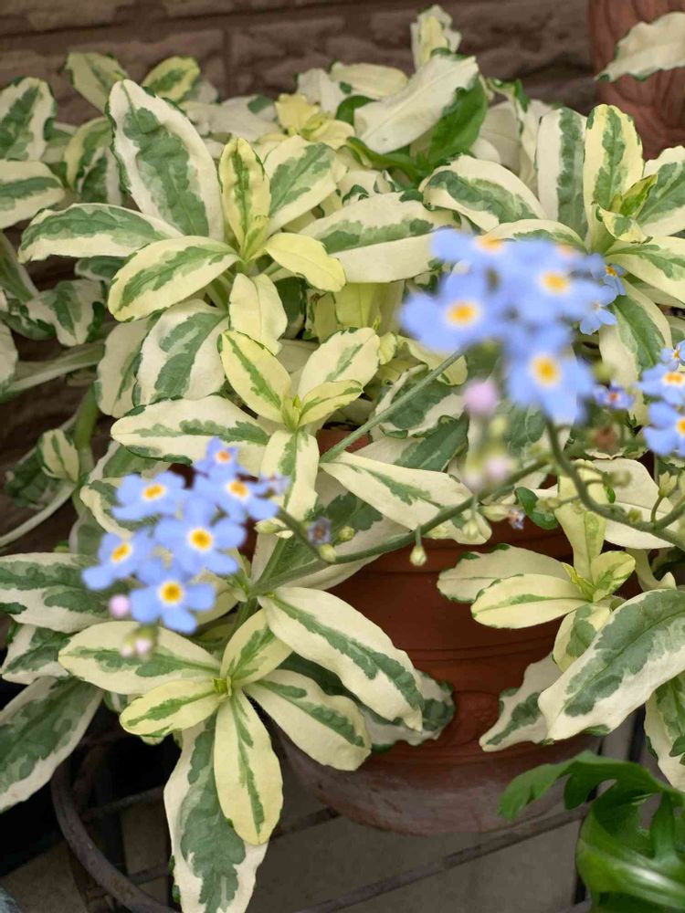 斑入りの葉っぱ綺麗ですね。お花が終わっても楽しめそう💚