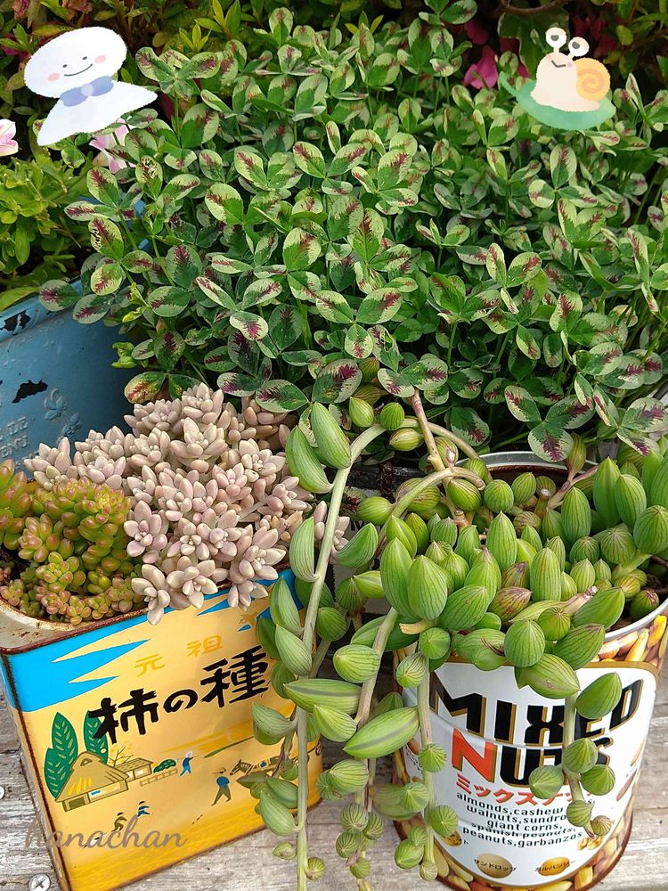 オソロのクローバー、もりもりになってる💚うちは小さな缶に入れてるから