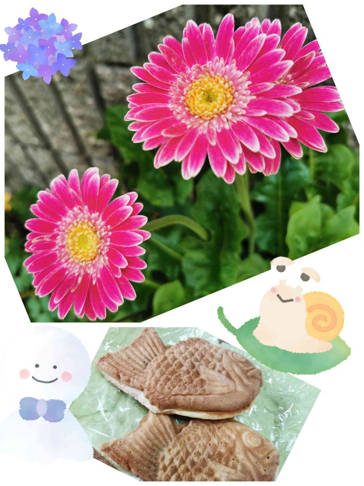 可愛い‼️❤️ お花も絵も。鯛焼きまで可愛いいし、おいしそう😄