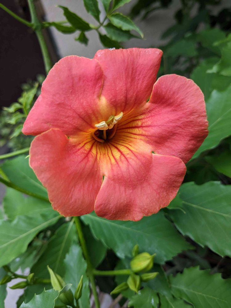ばあちゃん👵🏻ちに咲いてそうな花ベスト3に入るであろう、ノウゼンカズラ。今年も咲き出した