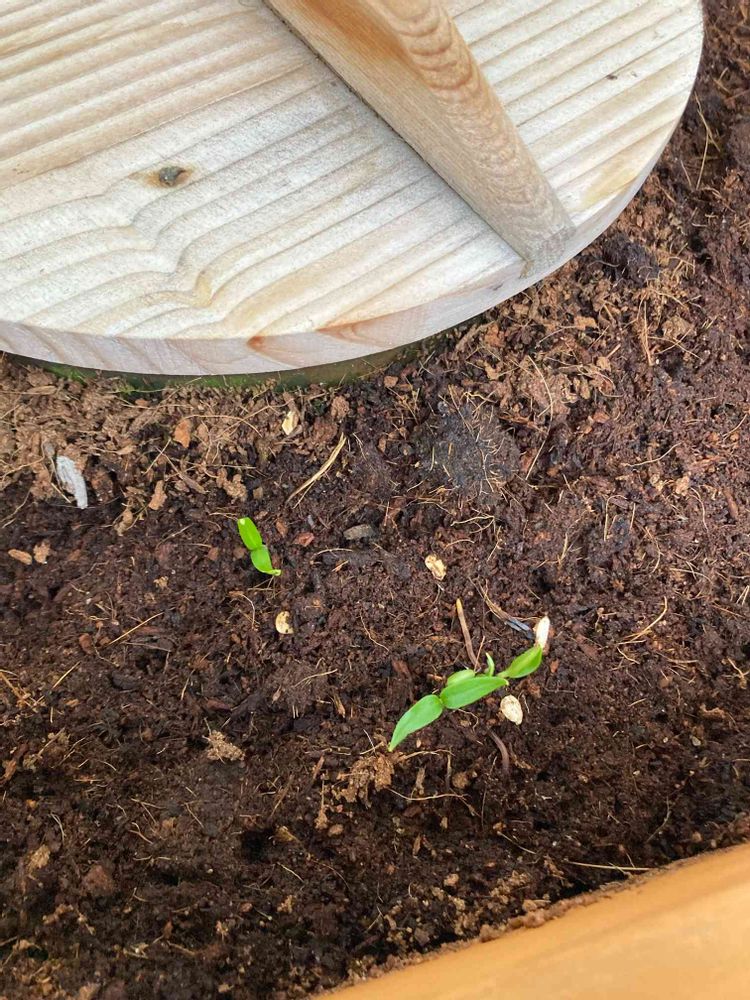 ミミズコンポストに美味しかった野菜とか果物の種を曖昧に撒いたり撒かなかったりしてるのですがなんか生えてきました🥺