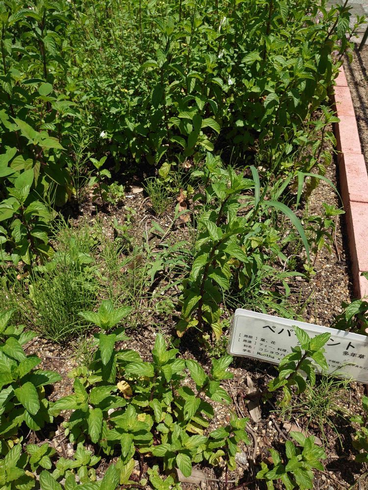 近くの公園で、ペパーミントが育てられています。ここもすぐそばまで雑草に覆われていました。