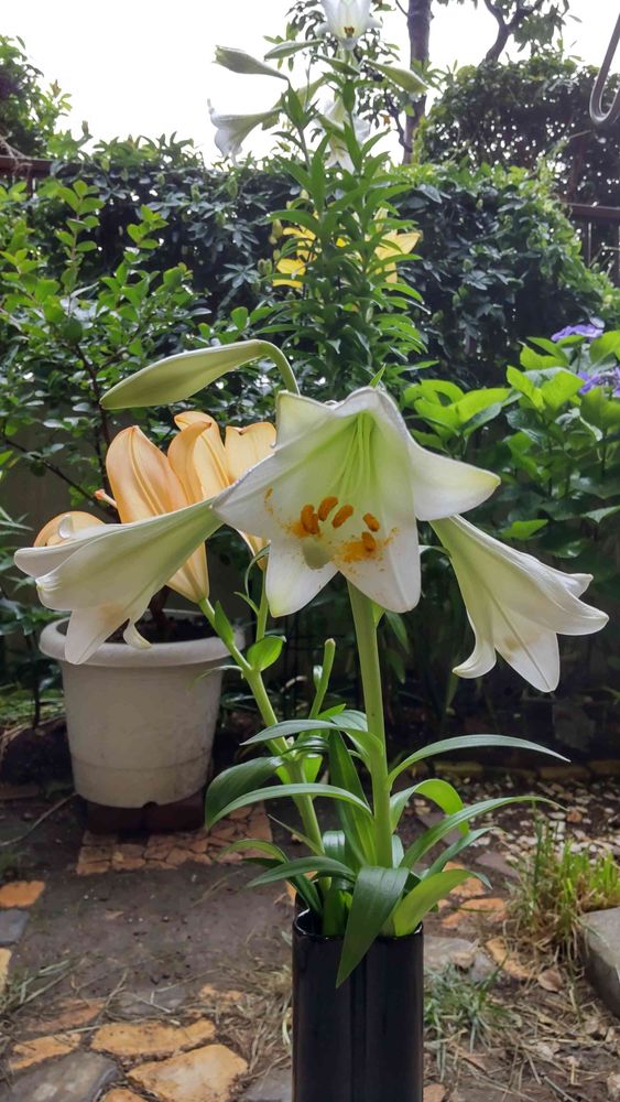 倒れなかった地植えの百合と一緒にパチリ。
