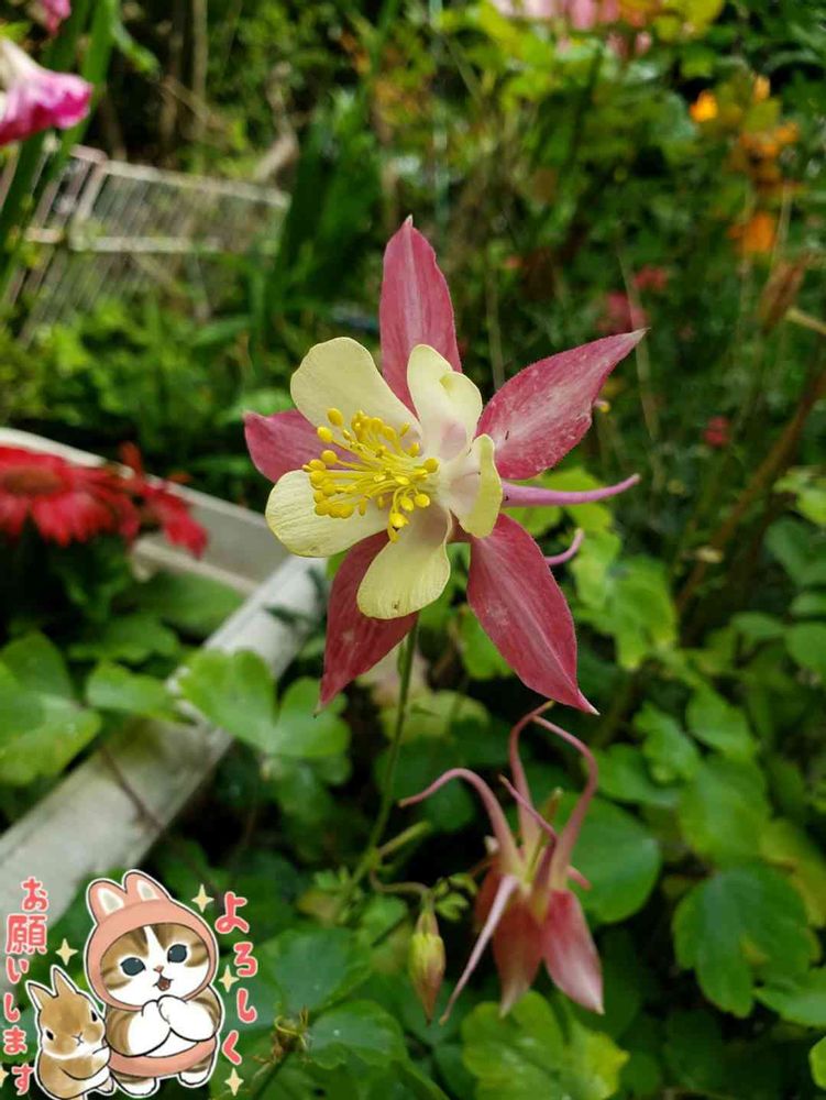 朝、プランターに西洋オダマキの花が咲いてました。✌️💕