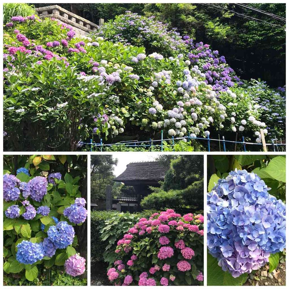 近くの極楽寺の山門前も、ピンクやブルーで素敵です💗💜💙