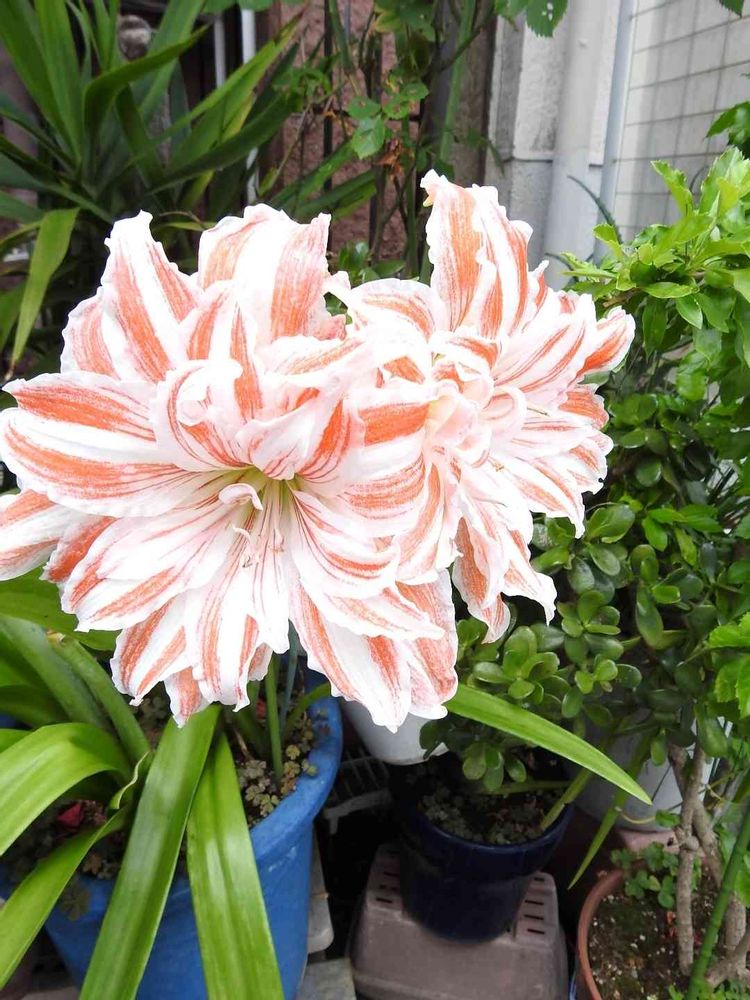 道すがら民家の玄関先で見た❗イキイキと咲き誇る綺麗な花🌸アマリリス🌸