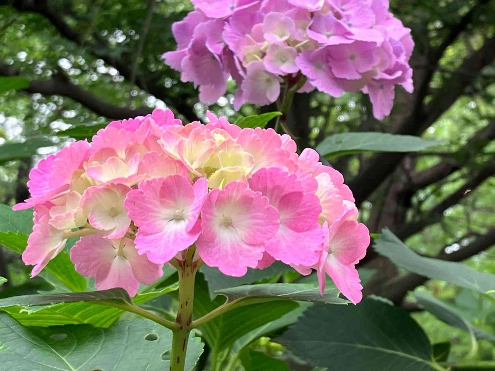 かわいいピンクです💕アジサイって同じ株でも色味が違ったりして面白いですよね✨
