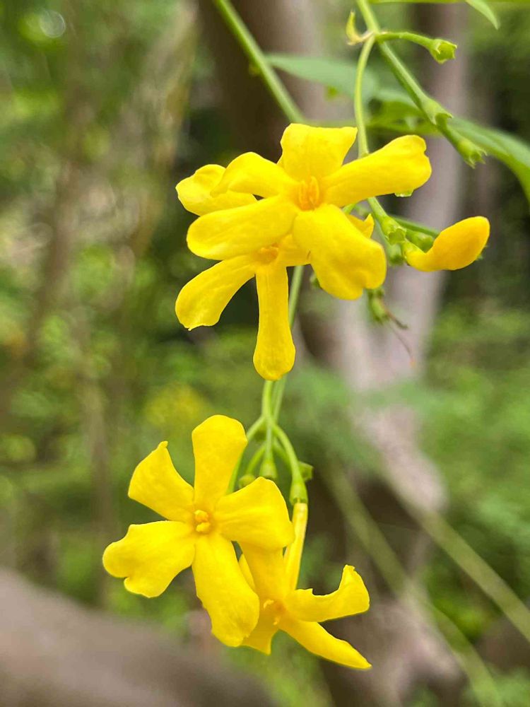 黄素馨(キソケイ): モクセイ科、ジャスミン属、素馨とは中国語でジャスミンのようですが、匂いのチェックは忘れましたぁ〜😅