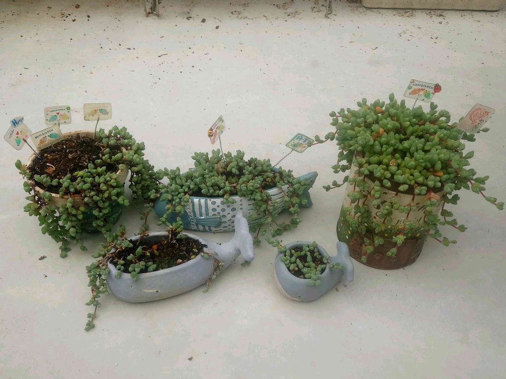 連投失礼💦今日はトトの日🐟💕我が家のトト達、並べてみました😊🌼鉢によっては土のとこ剥げてるのもあるな💦こりゃまた秋以後、カットして挿し直すかな🤭🎵