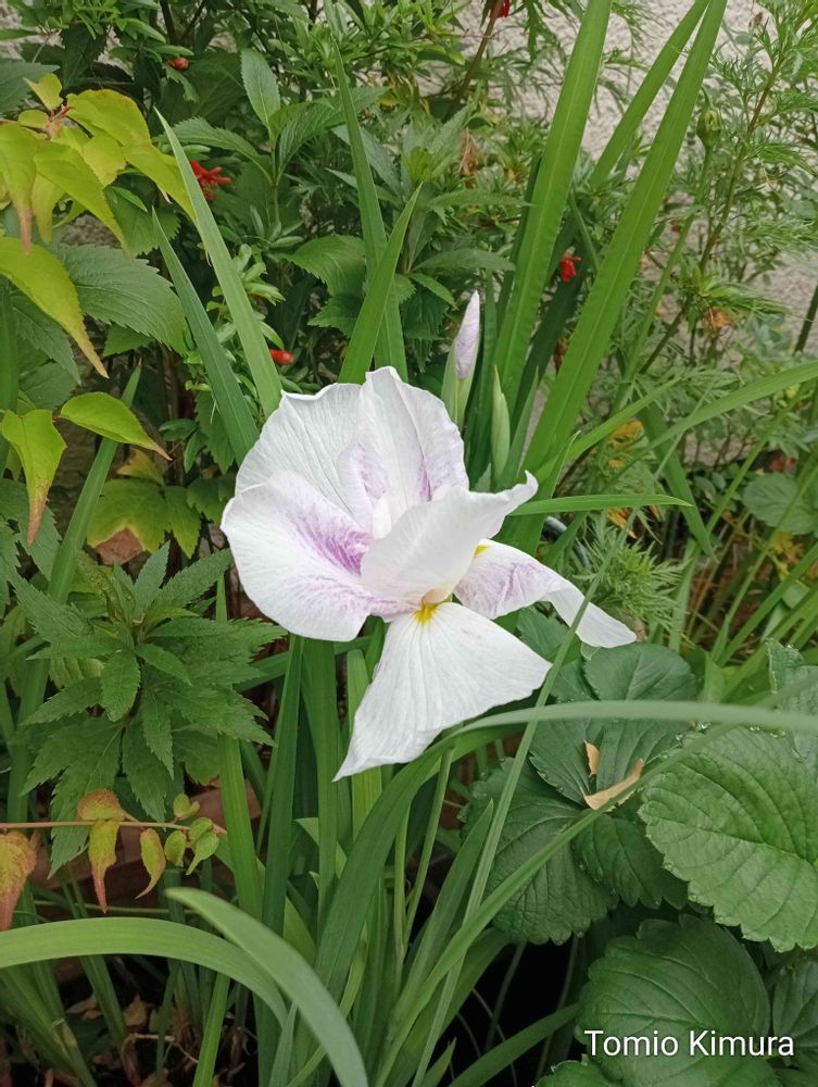 今朝、小さな庭の水鉢に、花菖蒲が開花しました。