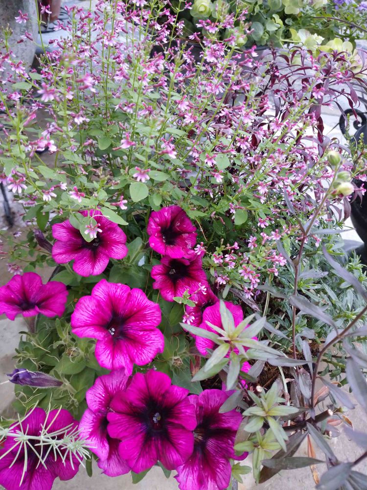 クフェアが繁ってきて、100円ペチュニアも良いかんじ😄✨🎶