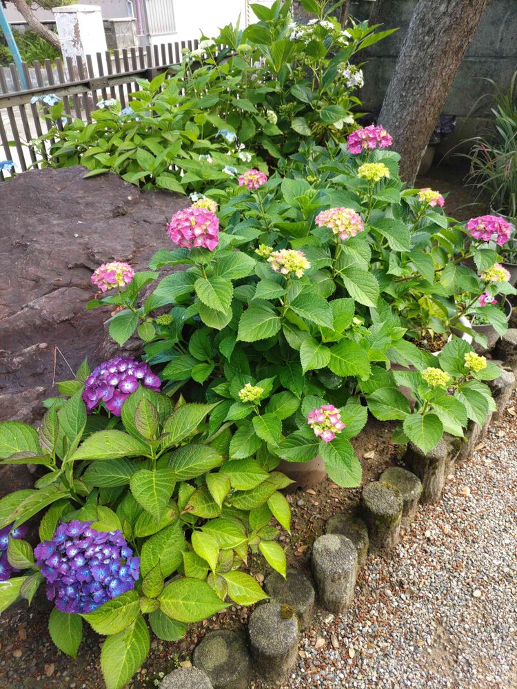 さん ヤマアジサイは奥にいる😁ピンクの紫陽花は名前がわかりません😆挿し木したものです🤭