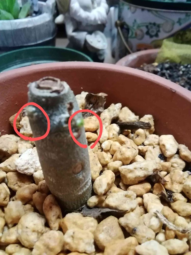 もう諦めようと見たら、なんと新芽🌱が出てきた。