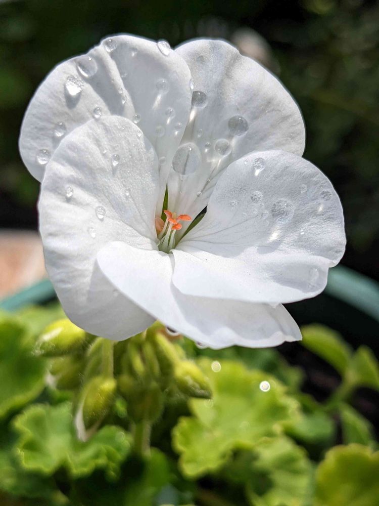 ゼラニウム、色々な色がありますが、あえて白い花をチョイスしました。