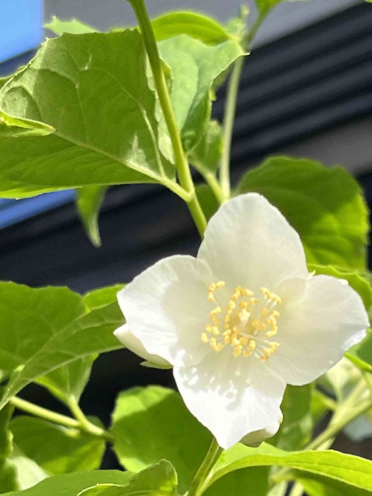 バイカウツギ今年は雪で折れた枝から新芽がヒュー❗️っと伸びていっぱい咲いてくれて嬉しいわー❣️ネモフィラ、ラミウムも道路側の花壇を飾ってくれて毎日
