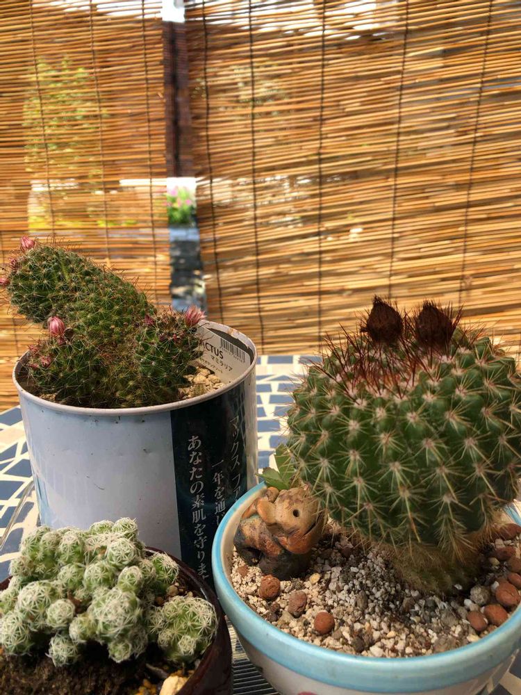 サボテンに花芽?発見🐰何色かな? すぐクターって倒れるマミラリアは今年は子供も花咲きそう❣️ 銀手毬も少し増えて来た