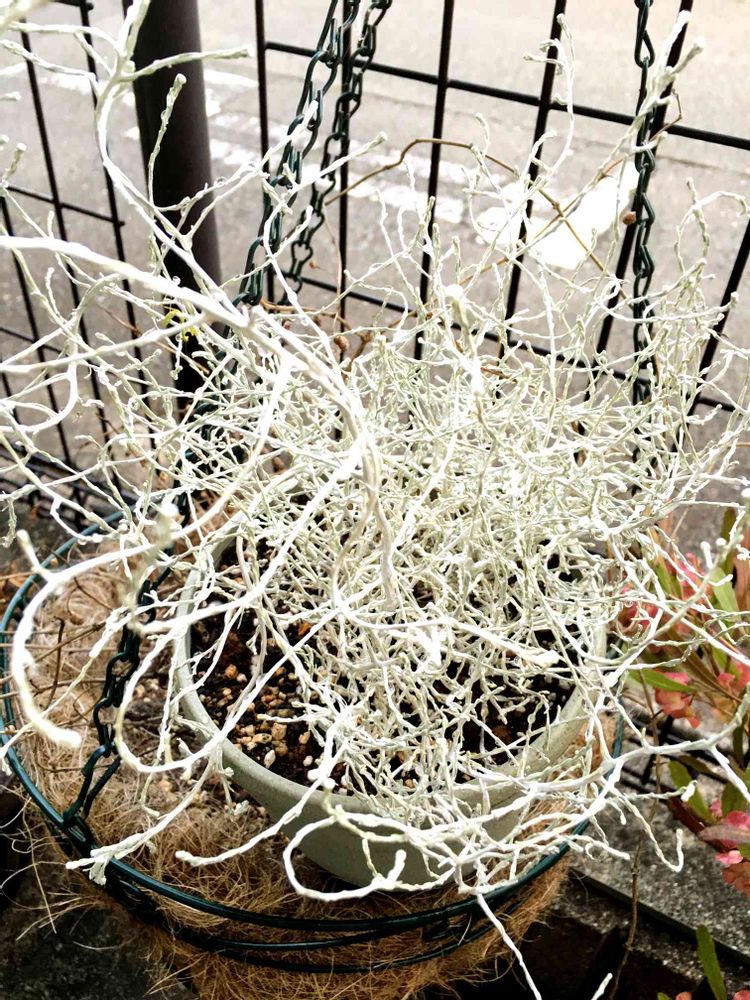今ベランダで札見てきました。“カロケファルス プラチーナ”ですね。