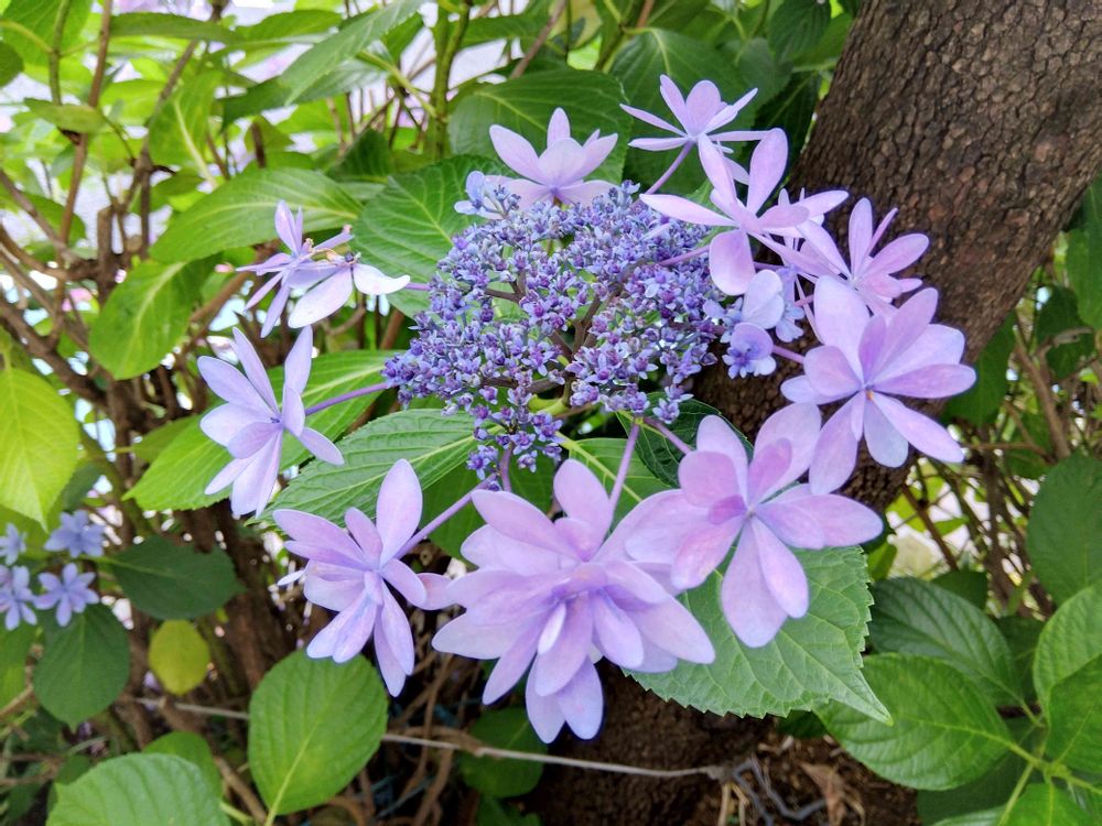 ガクアジサイの仲間だと思うのですが…花びらがやや細くて重なりが薄い感じが特徴的でした。