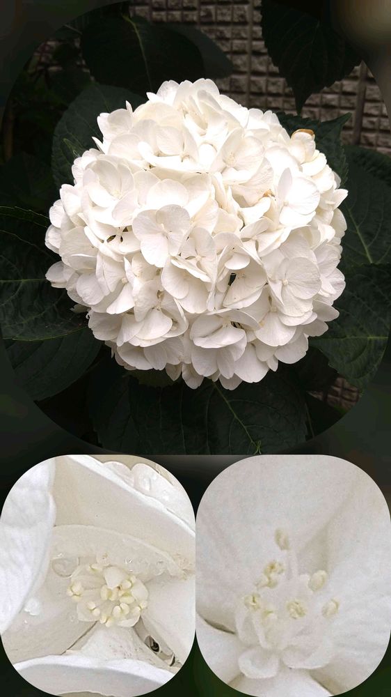 真っ白な手毬咲きの本紫陽花にも、雄しべ・雌しべ!