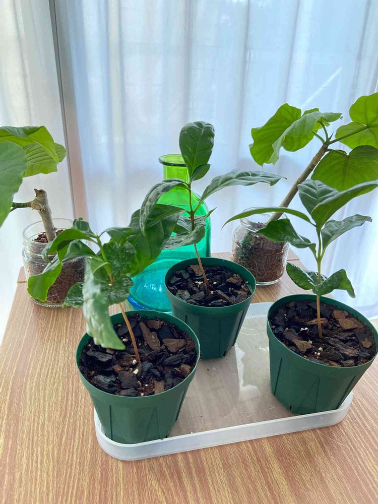 先月キャンドゥで購入したコーヒーの木、なんだかしなだれてしまって、水やりしてもかなり元気がないので、思い切って根鉢を3分割して植替えたら、すぐにピンピンしてきました😊