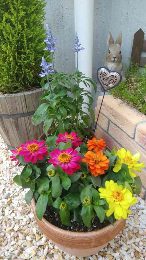 ジニア3色Mixとブルーサルビアを購入しました😍