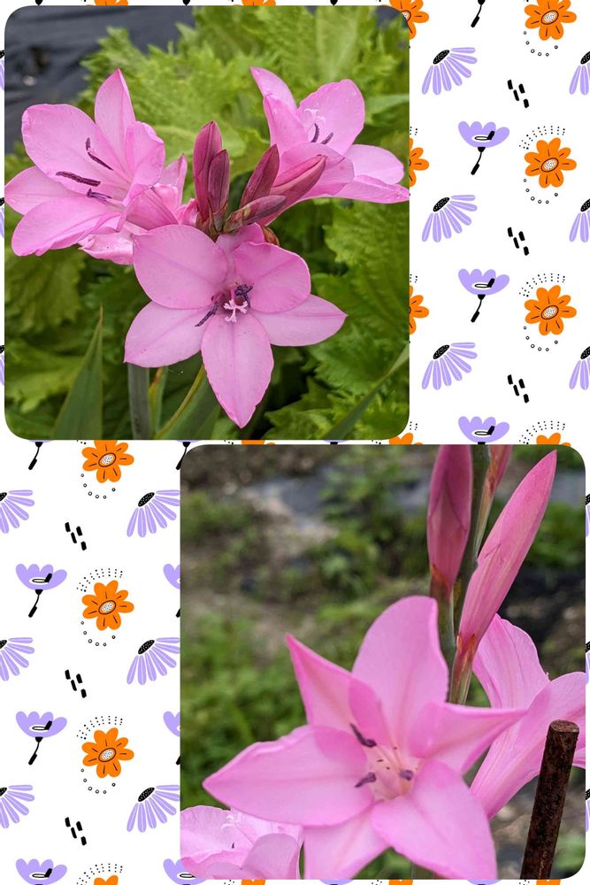 公園⛲前の畑の中でイキイキと咲き誇る綺麗な花🌸ワトソニア🌸