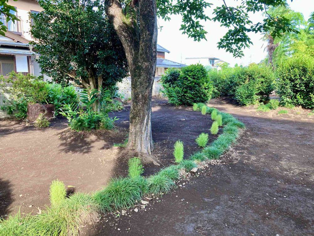 その後に土の表面を箒で🧹掃き雑草の