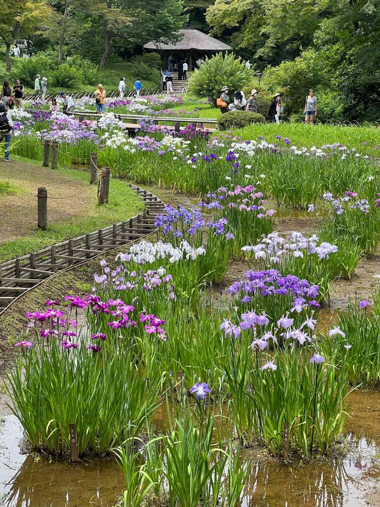 明治神宮御苑の菖蒲田が見ごろを迎えました。