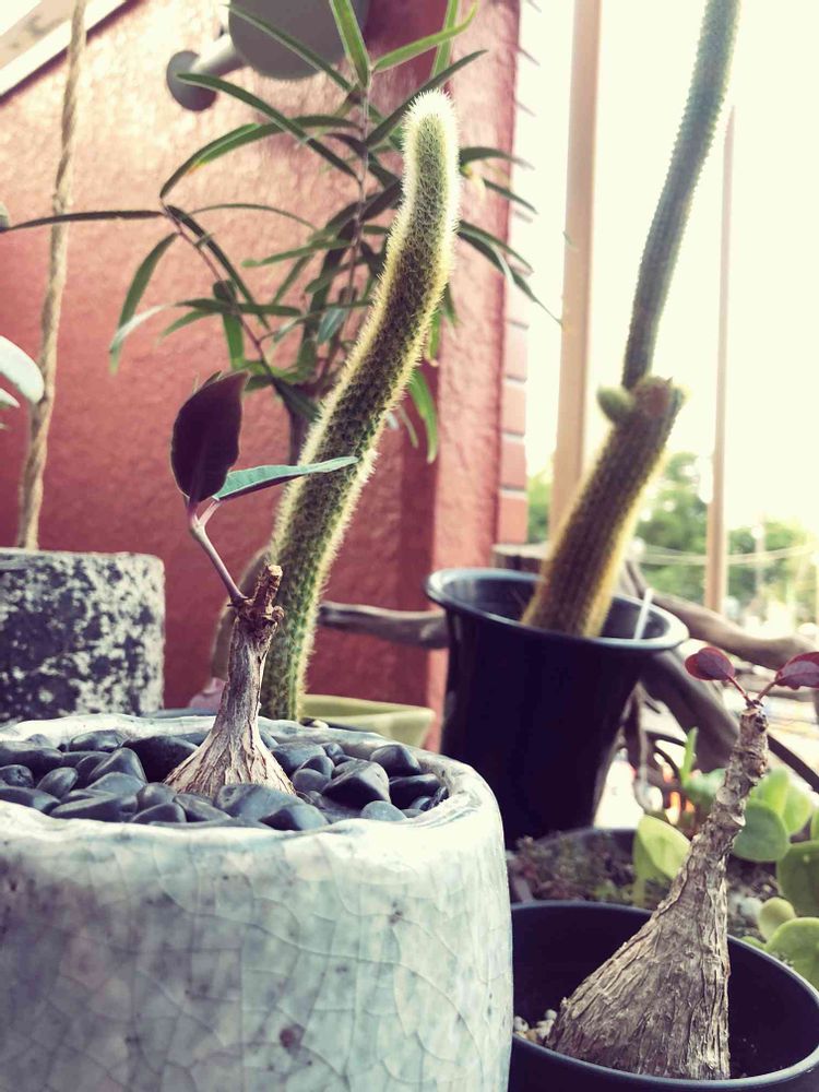 葉落ちしてしまったペトペンチアとフィランサスに新芽が出て、すくすく成長している。