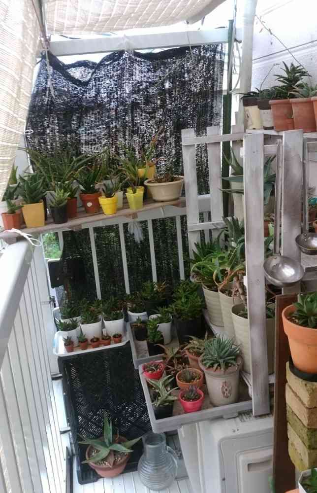 庭に多肉棚をたくさん作ろうと昨年挑戦しましたが、暑すぎ、寒冷紗張れない、ナメクジ被害などの不具合から多肉植物はアプローチとベランダと部屋の中に分散させることに…😂