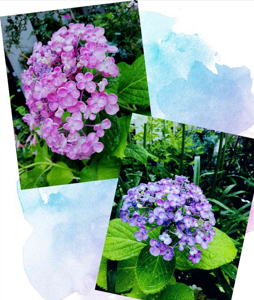 挿し木で同じように育てていたのですが咲いて見たらご覧のようにハッキリお色の違いが…😲鉢植えですが、たぶん土の酸度の違いでしょうね‼️2色楽しめてラッキーって感じです🎶😃💕