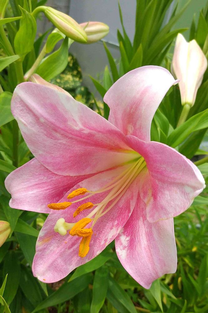ピンクのテツポウユリ、今年は大きく咲いてくれました。