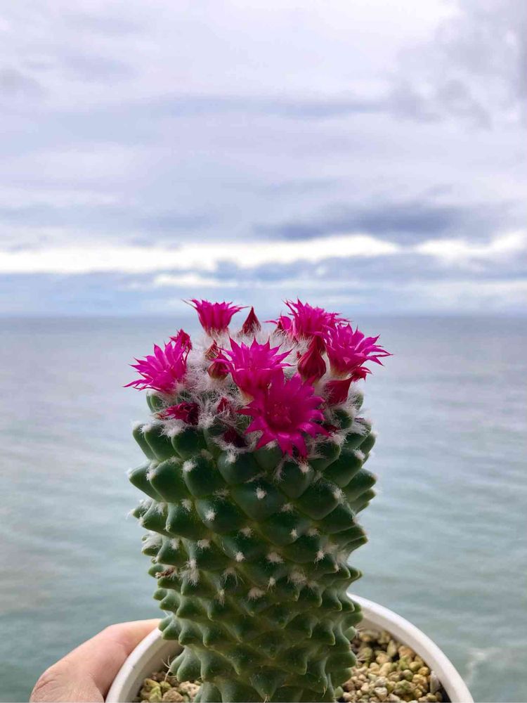 雨にも負けずサボテンの花🌵と海🌊とヤンピピさんの心に💚元気もろた〜🙋✨🫶