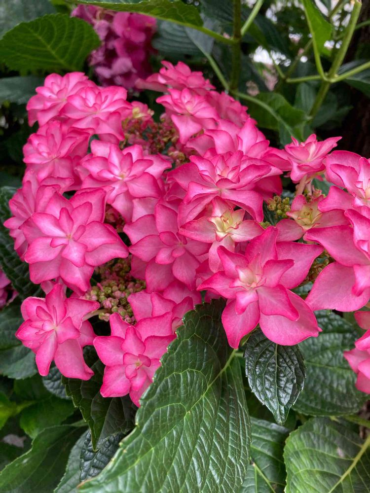 鮮やかな紅色の八重の額紫陽花の美しさに励まされるように、これから重要なプレゼンへ💪✨