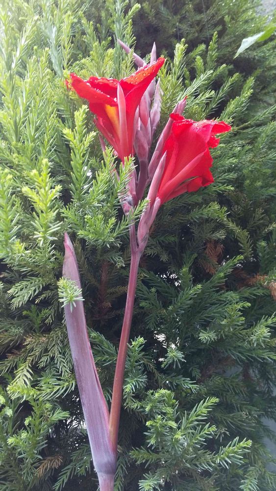 雨の中、我が家の赤い「カンナ」をパチリ!📸🌺🌿😊😄👌