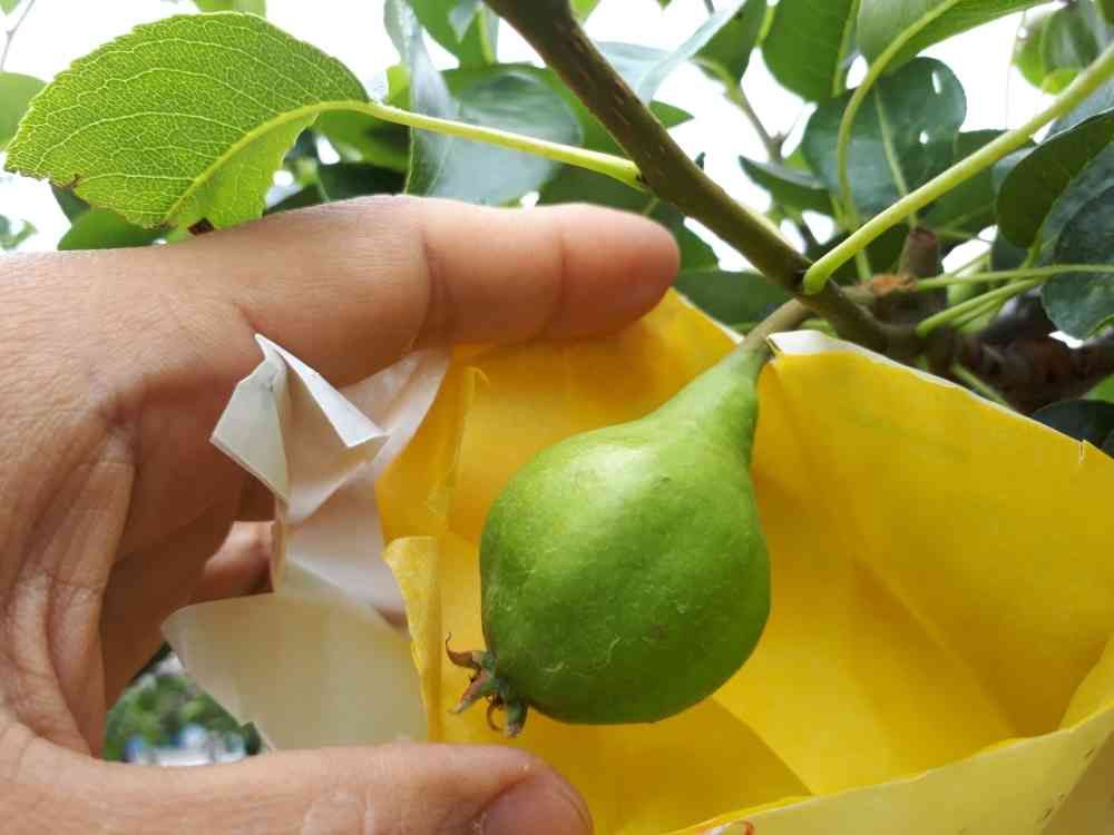 10月中旬の収穫まで無事に育ってくれる事を願っての袋掛けですね~