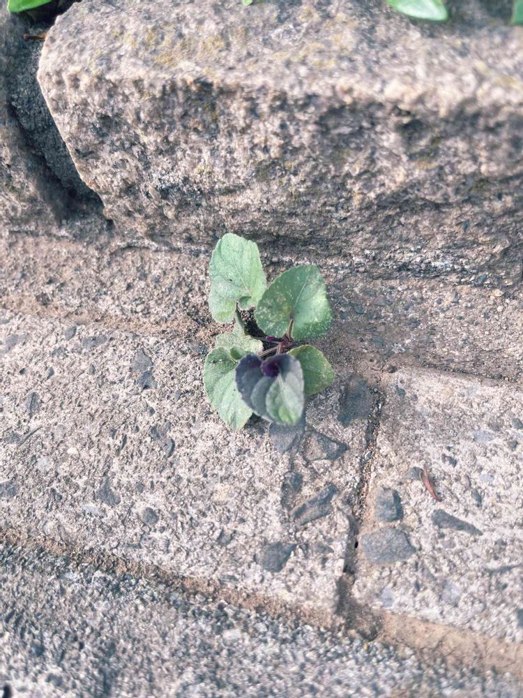 お庭の方からアリさん🐜に運ばれてきちゃったのかしら?コンクリートの隙間で、頑張ってます😅