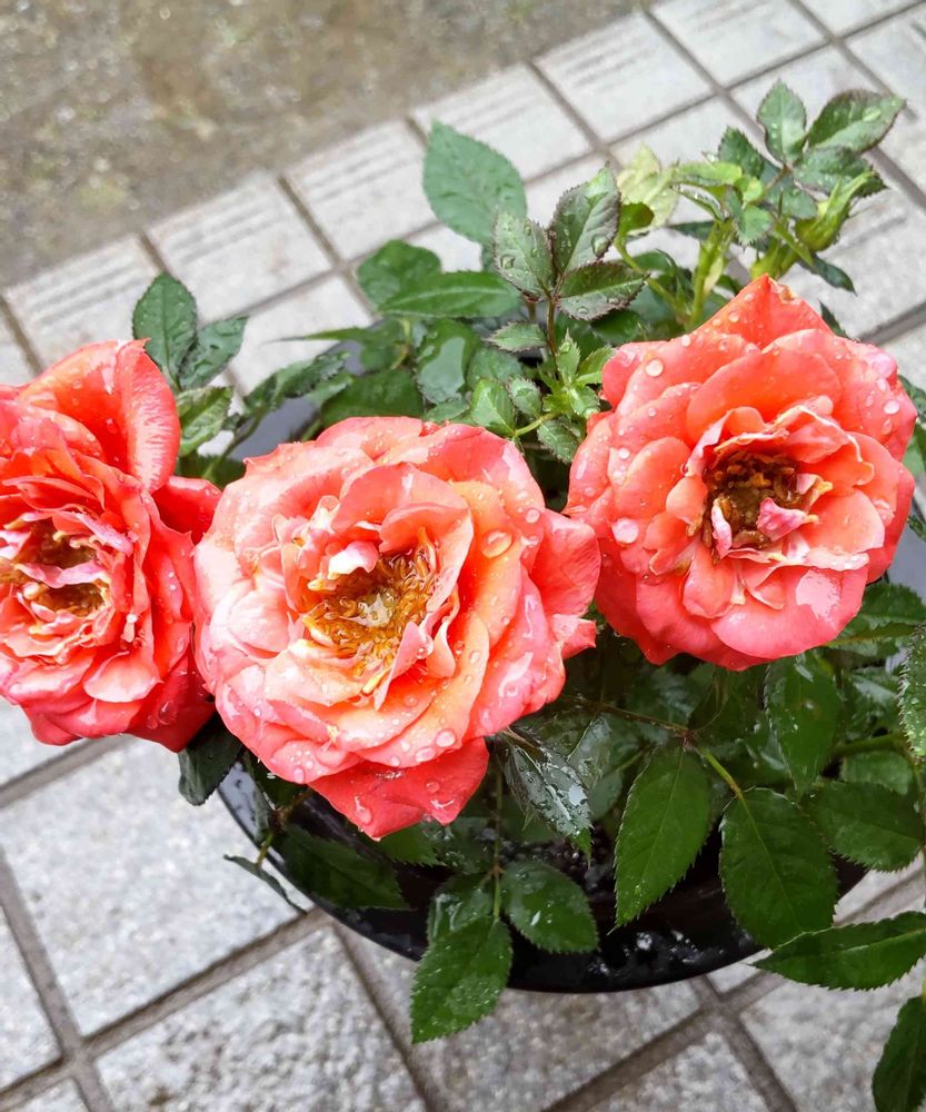 雨降りです。薔薇もあたまが重そうです。😃💮
