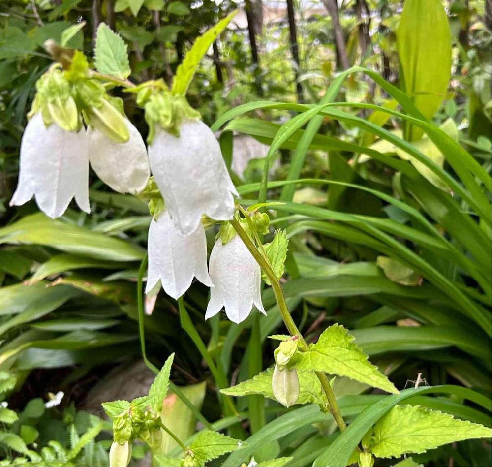 我が家の小さな庭にホタルブクロが咲き始めました♪さて、この写真のアングルから何をお伝えしたかったのかと言いますと、右端にベージュ色した小さなカマキリが見つけられましたでしょうか?このカマキリの子は毎年見つかりますが、成虫になりましてもファイティングポーズを取ろうとしないんですよ😳ホレホレ、とからかいましても、いやぁ〜ん、何すんのというポーズはします。もしかしてメス⁉️