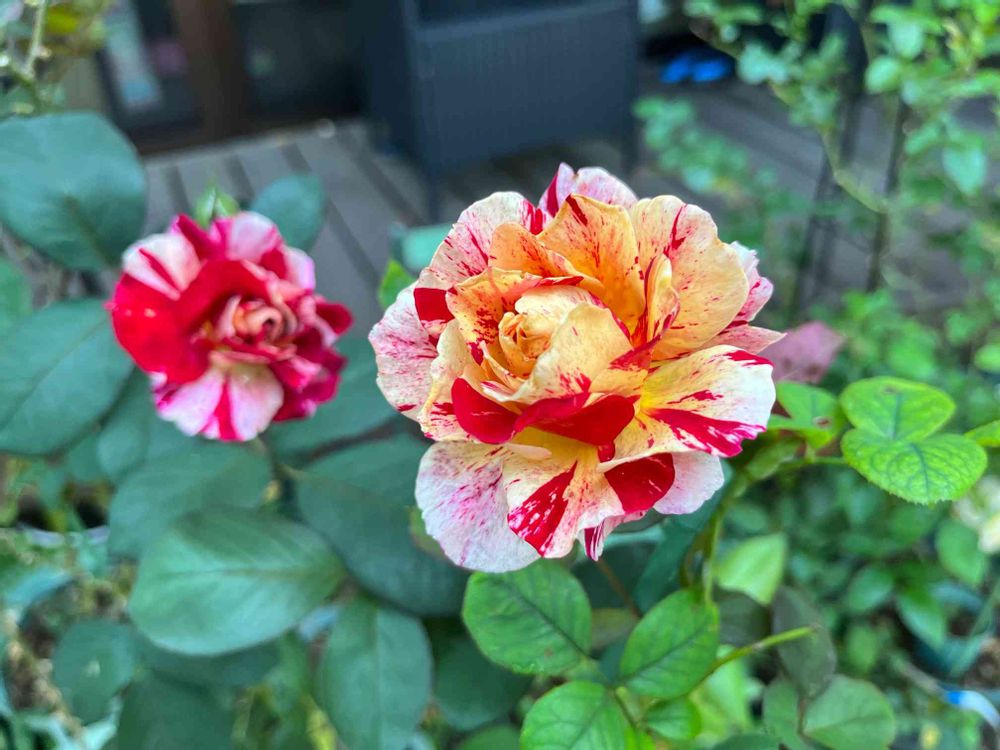奥は赤多めと白の絞りですが、開いてくると少しクリーム色が出てきました。