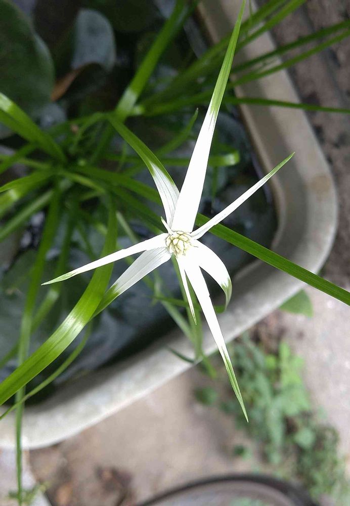 三年ぶりに咲いた、白鷺蚊帳吊り?シラサギカヤツリ。