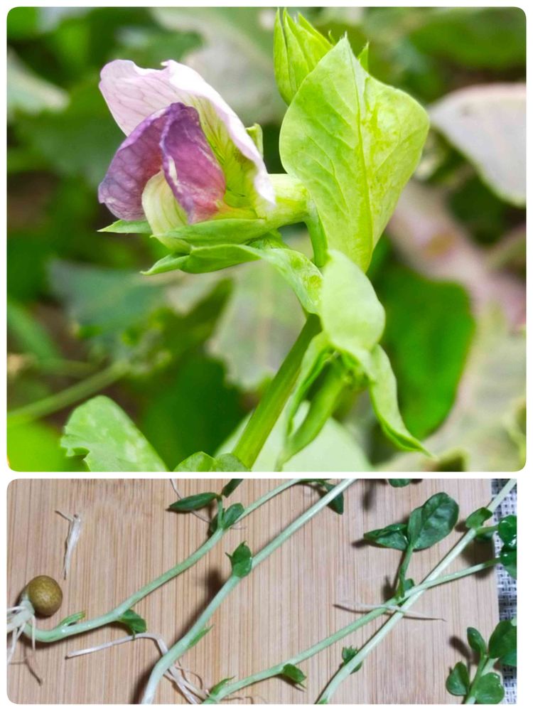 市販の豆苗をバラして植えたら花が咲きました‼️