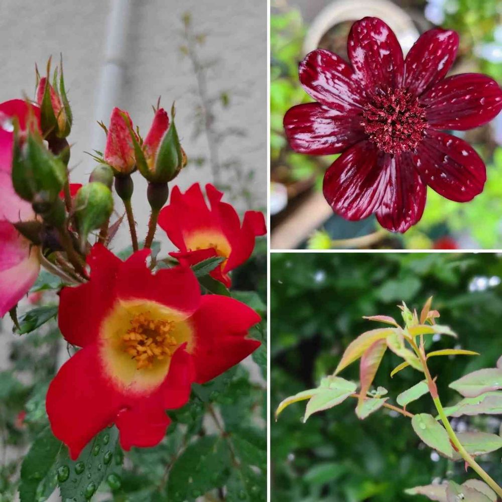 冬越し成功し、雨に濡れたチョコレートコスモス🌼