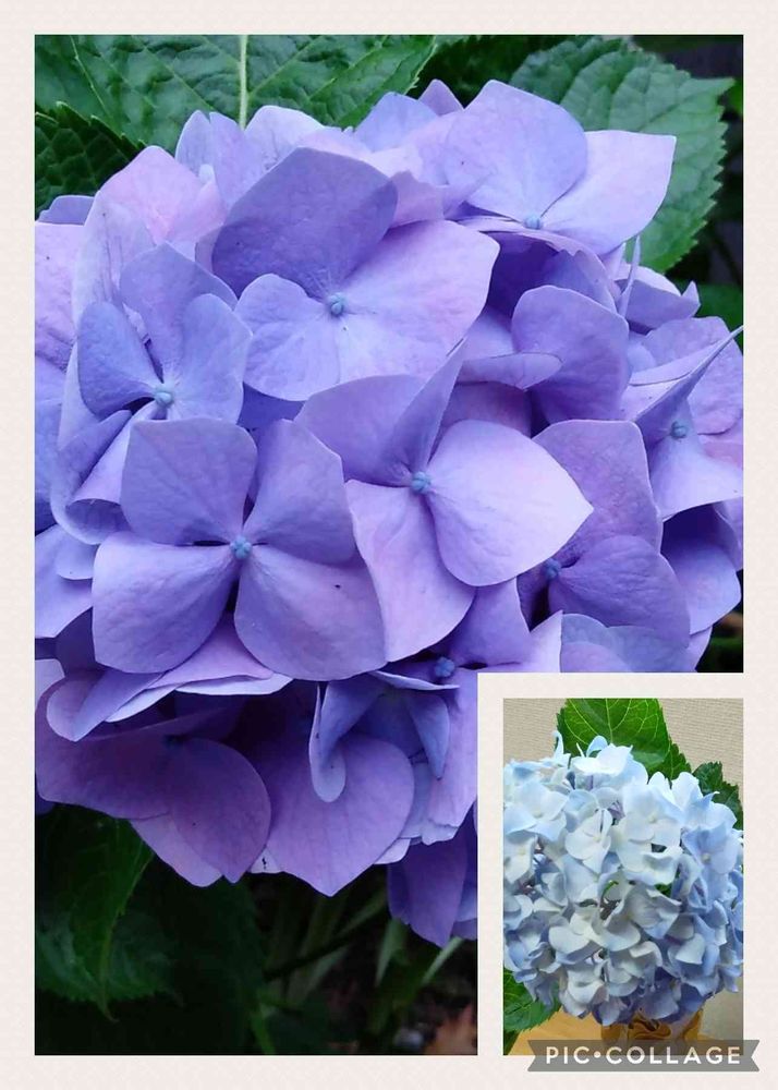 咲き始めは↘️水色でした~~~雨で倒れたお花を6/3から部屋に飾っていますがまだまだ元気デス🎶花壇は最近こんな感じで、さらに進むと💜💜💜になります