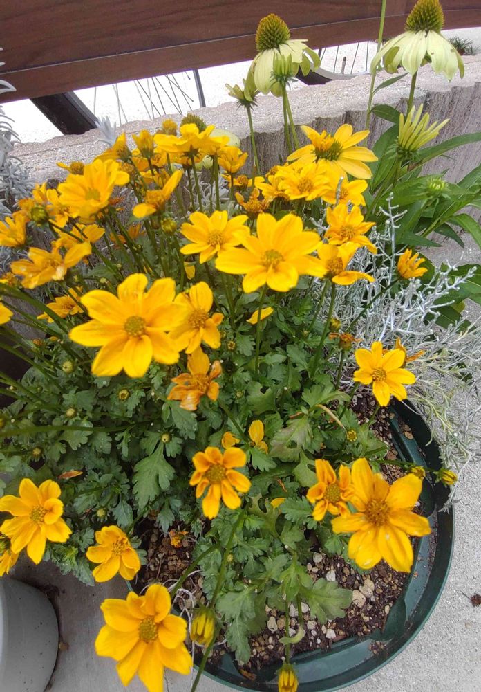 夏の花が元気よく咲き始めました。この子は早めに植えた子なので、かなり咲いています。同じビデンスでも植え付けの遅かった子はまだまだ咲いていません。