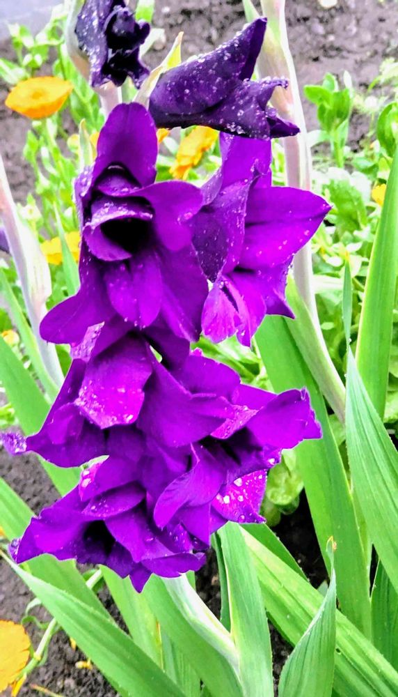 雨☔の中のグラジオラス💜💚💜