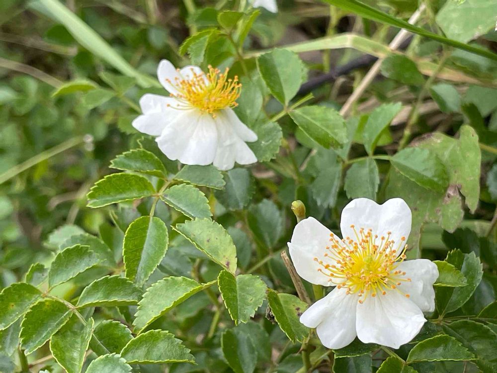郊外の畑の道を🚗走っていたら白い花が目につき‥何と私の好きなノイバラでした。