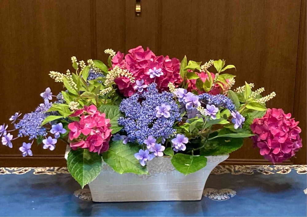 庭のアジサイをカットしました。梅雨時のアレンジです。