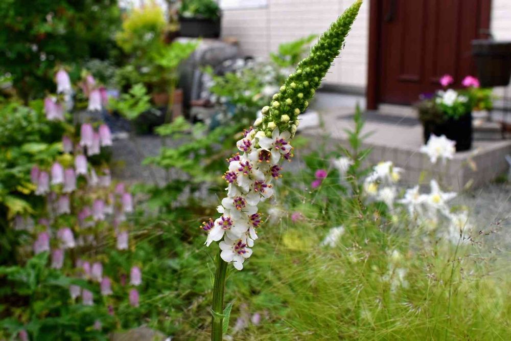 この花の咲き方はビロードもうずいかにソックリですね。あっという間に大きくなって我が家でも黄色い花が咲いてます。そちらは白で上品な感じですね。