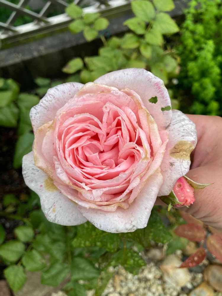 繊細な色の薔薇ちゃんは雨に当たると傷みが目立つし 香りの良い子は虫にも狙われ易いですよね😢